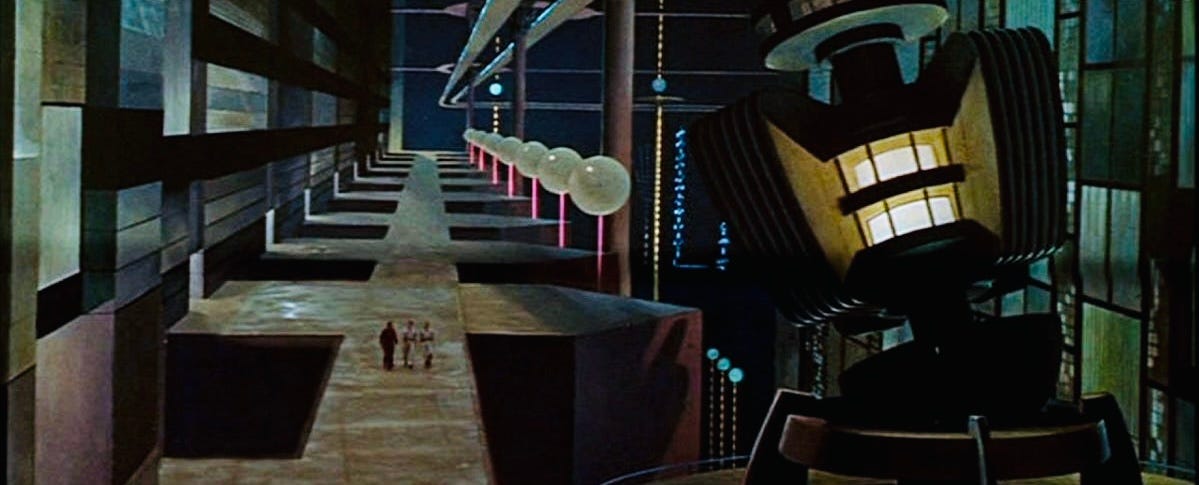 In Forbidden Planet, the vanished Krell civilization on Altair IV is portrayed as having reached that technological final destination by creating an “ultimate machine [that] would instantaneously project solid matter to any point on the planet, in any shape or color they might imagine… Creation by mere thought.” But the machine inadvertently gave the same godlike potency to the Krell’s own unconscious minds—to all their buried nightmares and long-suppressed, toxically irrational impulses. “After a million years of shining sanity,” as the character Dr. Morbius laments, “they could hardly have understood what power was destroying them.”